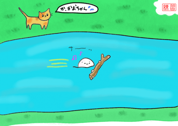 今日は泳いで川を渡った。